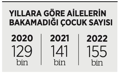 Yanık’ın açıkladığı veriler yoksulluğun çocuklar üzerindeki dramatik etkisini ortaya koydu. Buna göre, 2020 yılında 129 bin 422, 2021 yılında 141 bin 275 olan ailesinin yanında bakımı sağlanamayan çocuk sayısının, Aralık 2022 itibarıyla 155 bini aştığı bildirildi.