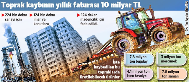 Sayime Başçı Türkiye, sadece 2011 yılında 348 bin 124 hektar tarım toprağını konut, sanayi