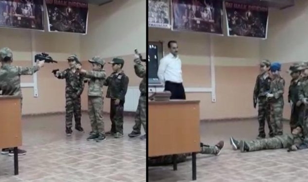İlkokul öğrencilerine ‘SİLAHLI’ gösteri yaptırılmış… İnanılmaz, akıl almaz bir ola