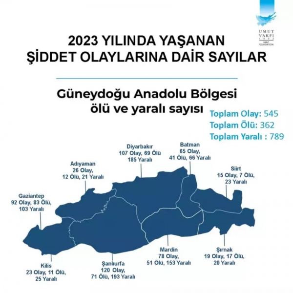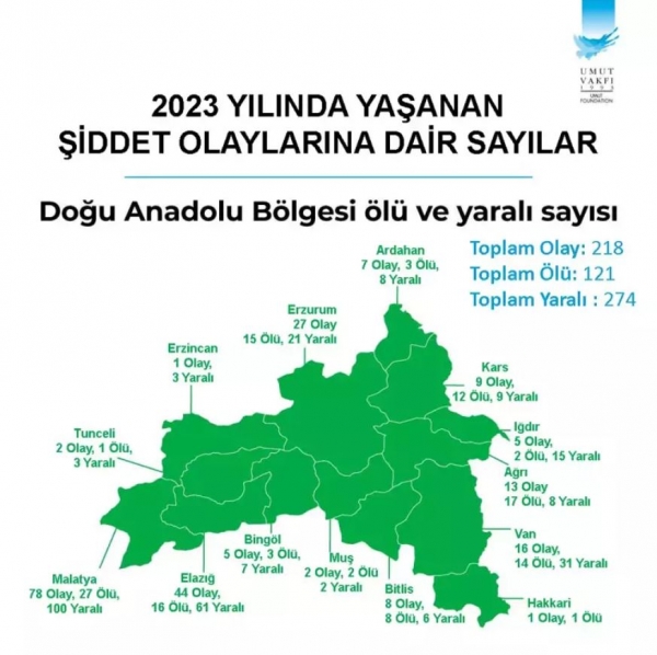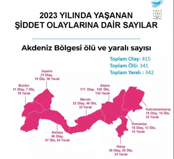 Bölgede; 2023’ün şiddet haritasında yer alan rakamlar şöyle: