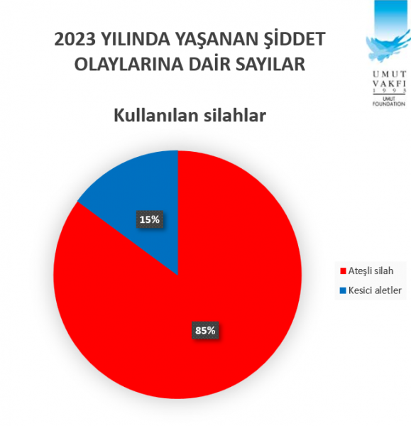 Yani depreme, aylarca deprem haberlerine tüm ülkenin kilitlenmesine rağmen 2023 yılında; 3 bin 773 silahlı şiddet olayı basına yansıdı. Basına yansıyan bu olaylarda 2 bin 318 kişi ölü, 3 bin 820 kişi de yaralandı. Yaşanan silahlı şiddet olaylarının 3 bin 212’sinde yani yüzde 85’inde kaleşnikof, otomatik tüfekler dahil ateşli silahlar (106’sı beylik silahı toplam 2 bin 427’si tabanca ve 784’ü tüfekler), yüzde 15’ine denk gelen 561’inde de bıçaklardan baltalara her tür kesici alet kullanıldı…