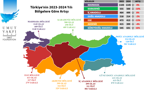 Bir öncesi yıl Karadeniz Bölgesi 555 olayla bölgeler arasında ikinci sıradaydı ve Güneydoğu Anadolu Bölgesi 545 basına yansıyan olayla üçüncü sırada onu takip ediyordu.