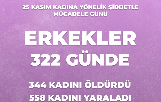 Erkekler, 1 Ocak 2024-18 Kasım 2024 dönemindeki 322 günde en az 344 kadını öldürdü, e