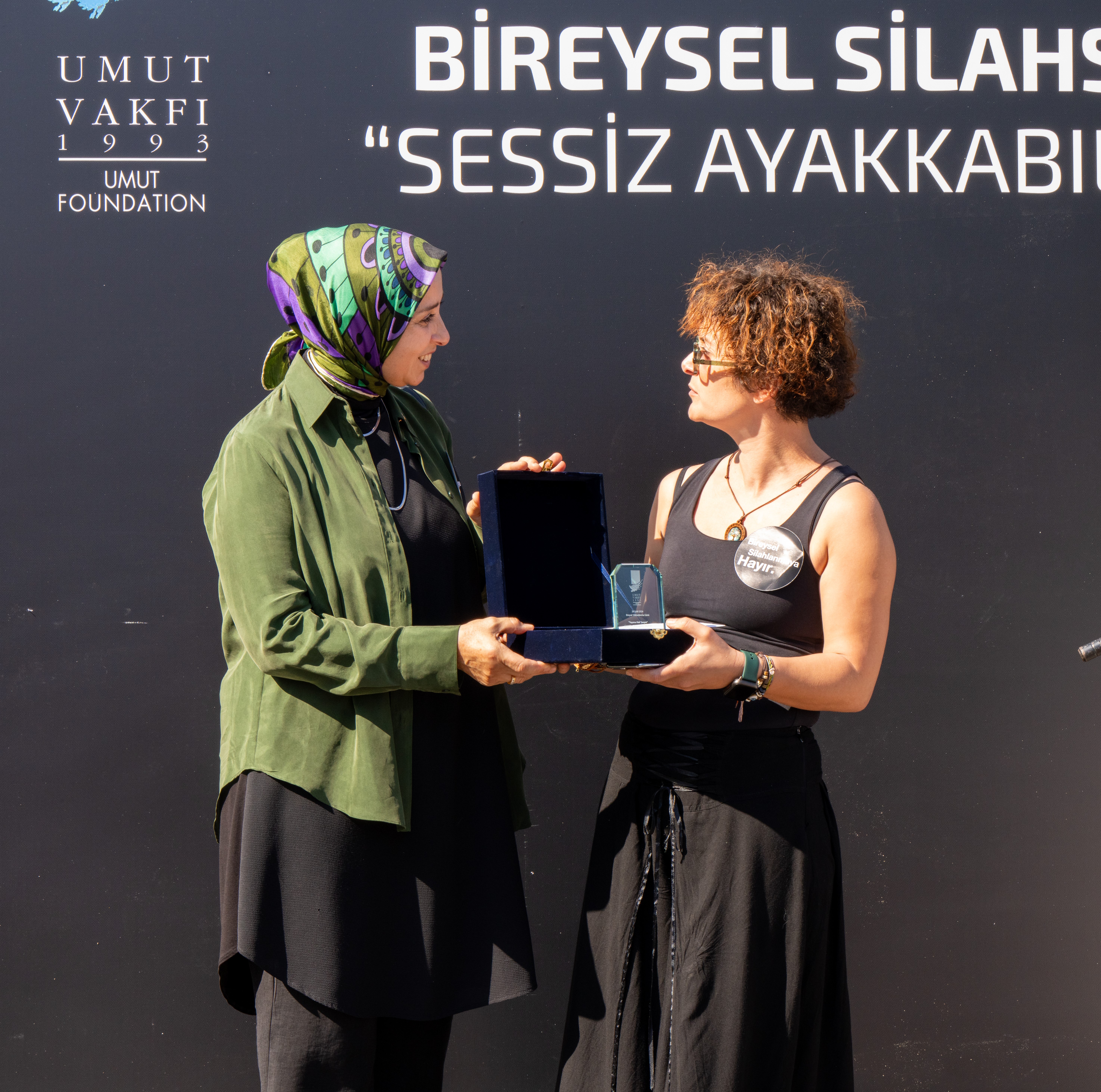 Özben Önal ise katılımı için Çaka ve törene katılarak bu önemli konuda Umut Vakfı’na destek veren herkese teşekkür ederek “Bu mağduriyetlerin artmaması, şiddet olaylarının azalması için güç birliği yapmalıyız, hep birlikte şiddetin her türlüsüne karşı çıkmalıyız, şiddete ‘DUR’ demeliyiz. Şiddete hayır, bireysel silahlanmaya hayır” diye konuştu…