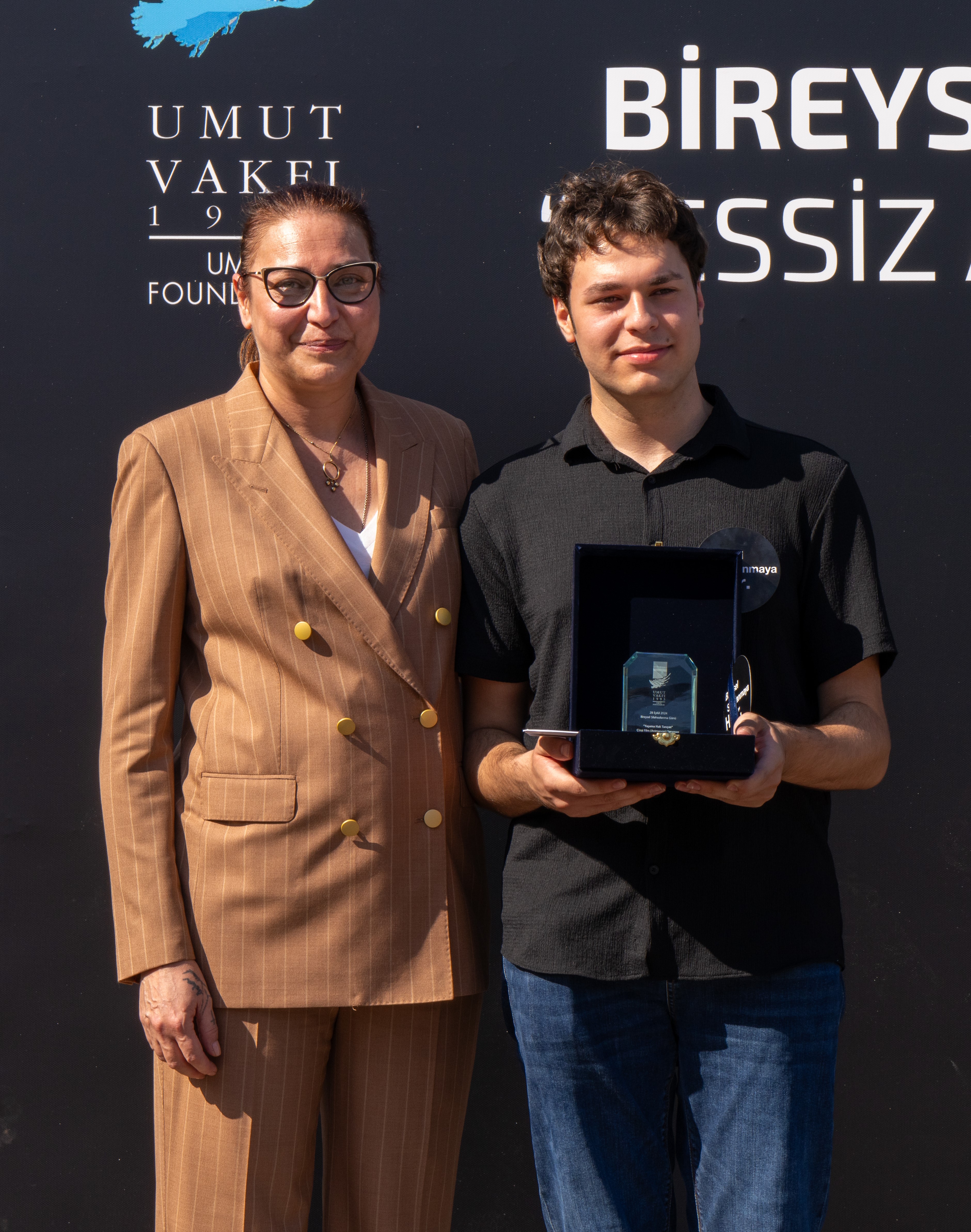 Çaka ödülünü Umut Vakfı Başkanı Özben Önal’ın elinden aldı.