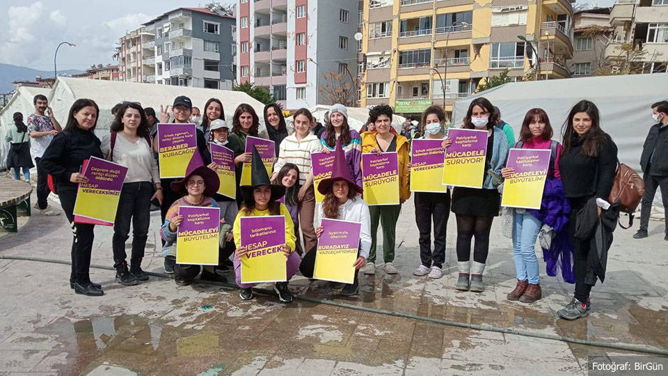 Antakya Mor Dayanışma üyesi Selver Büyükkeleş, afet bölgesindeki kadınların ihmal edildiğini söyledi. Bölgedeki kadınlara yönelik şiddetin artığını vurgulayan Büyükkeleş, “Genç bir kadın geçtiğimiz salı günü babası tarafından katledildi. Bizim öğrendiğimize göre, kadının babası ‘ava gidecektim yanlışlıkla oldu’ diyerek kendisini savunuyor. Bu silahlar yavaş yavaş diğer kadınlara yöneleceğini biliyoruz. Önlem alınmazsa şiddetin, istismarın, cinayetin boyutu katlanarak artacak” dedi. İktidarın, kadınların güvenliğine yönelik çalışmalarda sınıfta kaldığını belirten Büyükkeleş, “Bir çadır bile getiremeyen devlet kadın cinayetlerini de engelleyemiyor. Bireysel silahlanmanın artığını gözlemliyoruz. Bu silahlar da ilk olarak kadınlara yöneltiliyor. Kadınların can güvenliği yok. İstanbul Sözleşmesi uygulanmayıp, cezasızlık politikası uygulandığı için kadınlar hedefe konuluyor. Depremden etkilendiği bölgelerde şiddetin boyutları, kadın cinayetleri açığa çıktı” diye konuştu.