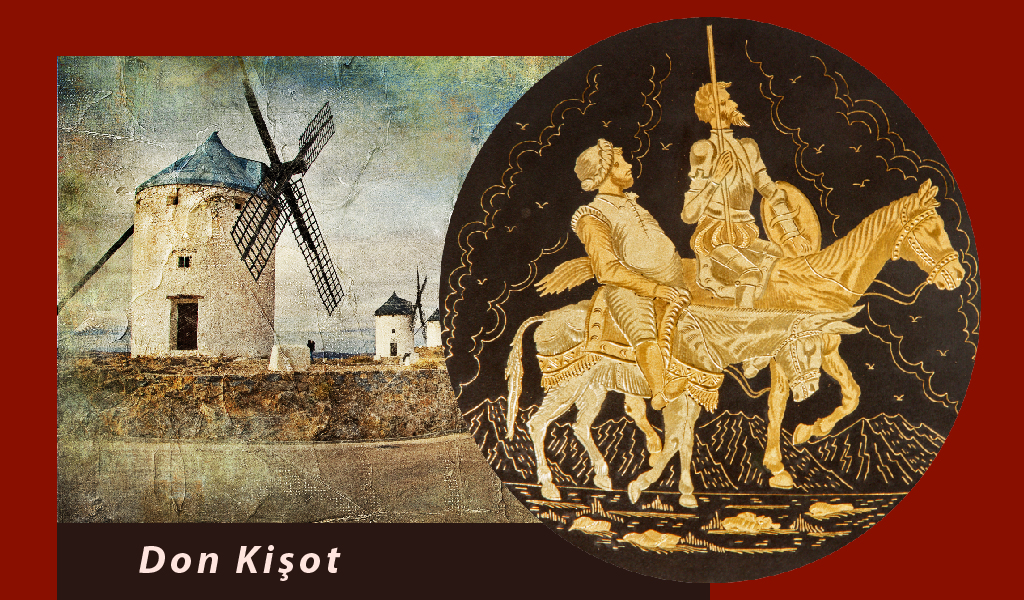 Unutanlar için hemen hatırlatalım. Hayal dünyası son derece geniş olan Gervantes, “Don Kişot” romanında Mancha’da yaşayan ve alt tabaka soylu olan Alonso Quijano’nun maceralarına odaklanır. Quijano, okuduğu şövalye romanlarına kendini öylesine kaptırır ki sonunda aklını yitirir ve ‘Don Kişot de la Mancha’ adını alarak gezgin bir şövalye olmaya karar verir ve macera başlar…