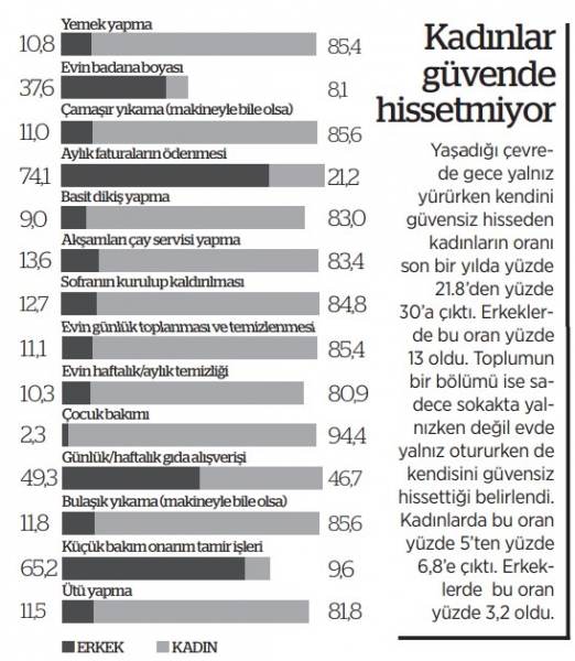 8 Mart yaklaşırken kadınlara yönelik eşitsizlikler verilerle ortaya çıktı. TÜİK verilerine göre, toplam nüfusun yüzde 49,9’unu kadınlar, yüzde 50,1’ini ise erkekler oluşturuyor. Veriler, kadın istihdam oranının erkeklerin yarısından az olduğu acı gerçeğini gözler önüne serdi. Aynı verilere göre kadınlar erkeklere oranla gece sokağa çıkmaya korkuyor. Kadın örgütleri verilerin ortaya koyduğu kadınlar üzerindeki baskıcı tutumun AKP iktidarının politikalarından kaynaklı olduğunu dile getirdi.