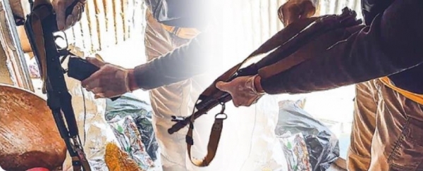 Evin birinde çatı katındaki atıl eşyaların arasına saklanan bir çuvalın içerisinden; ‘Kalaşnikof marka uzun namlulu silah, 2 ruhsatsız tabanca ve bunlara ait 6 adet şarjör ve 89 adet mermi, diğer adreste de bir adet ruhsatsız tabanca, bir adet şarjör ve 7 mermiyle birlikte bir de balistik yelek ele geçirildi.