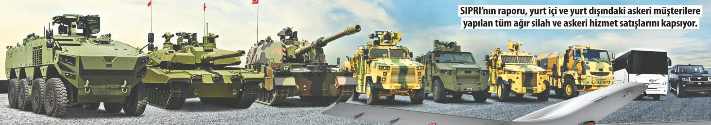 SIPRI’nın geçen yıl en çok silah ve askeri hizmet satışı yapan ilk 100 savunma sanayisi şirketi listesinde 5 Türk firması yer aldı. Türk şirketlerinin toplam gelirleri geçen yıl 2023’e göre yüzde 11 artarak 10.1 milyar dolara ulaştı. Rapora göre, Makine ve Kimya Endüstrisi AŞ (MKE) ilk kez en büyük 100 listesine girdi. Listede, ASELSAN 3.47 milyar dolar gelirle 47’nci, Türk Havacılık ve Uzay Sanayii 2.16 milyar dolarla 65’inci, Baykar 1.9 milyar dolarla 73’üncü, Roketsan 1.39 milyar dolarla 87’nci ve Makine ve Kimya Endüstrisi AŞ 1.21 milyar dolarla 93’üncü sırada yer aldı. SIPRI, kurulduğu 1966’dan bugüne çatışma, silahlanma, silah kontrolü ve silahsızlanma gibi alanlarda araştırma, rapor ve analizler hazırlıyor. SIPRI’nin küresel silah satışlarına ilişkin veri tabanı 1989’da oluşturuldu.