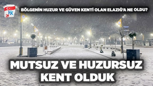 Ülkenin ve bölgesinin Huzur ve Güven kenti konumunda olan Elazığ son yıllarda yaşanan olaylar sonucunda Mutsuz ve Huzursuz kent konumuna geldi.
