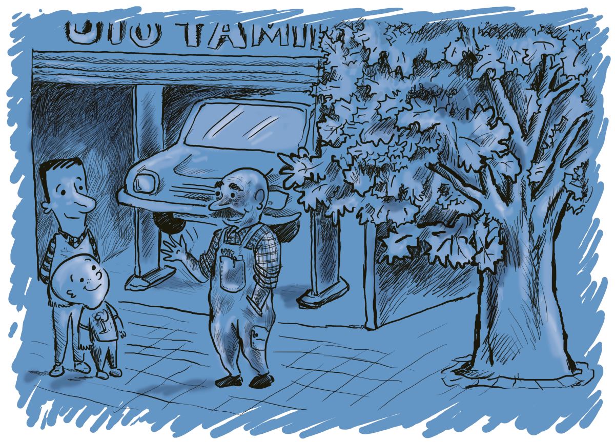 Her tanıştığına, “Merhaba, ben kaportacı Kel Hasan…” diyen, “güldüğünde dünya gülen, gökyüzü okulundan mezun adam”, şair oğlun gözünde “mavi bir kelaynak”tı da.