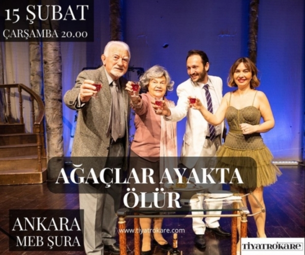 Nevra Serezli, Gökhan Mete, Nuri Gökaşan, Önder Atakanlı, Meral Asütürk, Meltem Özlevent, Hakan Dönertaşlı, Server Demirtaş’ın oynadığı oyunun sahne tasarımını Cihan Aşar, Kostüm tasarımını Sadık Kızılağaç, Işık tasarımını İsmail Sağır’ın yaptığı 11 Ödüllü Ağaçlar Ayakta Ölür oyunu; 4 Şubat Beylikdüzü, 10 Şubat Hatay, 11 Şubat İskenderun, 12 Şubat Mersin, 13 Şubat Adana, 14 Şubat Kayseri, 15 ve 16 Şubat Ankara MEB Şura, 26 Şubat Trump Sahne, 27 Şubat Ataköy Yunus Emre Kültür Merkezi’nde seyirciyle buluşacak.